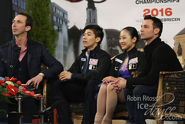 Rikako Fukase & Aru Tateno (JPN) with coaches Romain Haguenauer & Pascal Denis